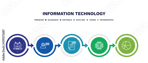 set of information technology thin line icons. information technology outline icons with infographic template. linear icons such as seo reputation, seo consulting, seo report, hardware, theme