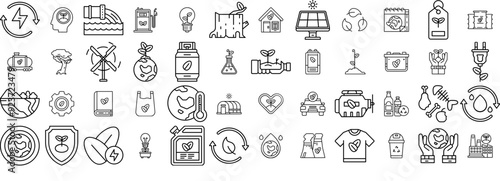 Set Of Linear Goofy Ecology Line Icons Web Header Banner Design Containing Ecology,Earth-Day,Growth,Electricity,Eco Stroke Icon Collection. Vector Illustration