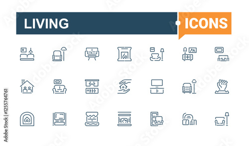 Set of Living line icons. Includes icons for home, bedroom, web, couch, sofa, eco, room and more. Set of line pictogram. Minimalist editable vector stroke.