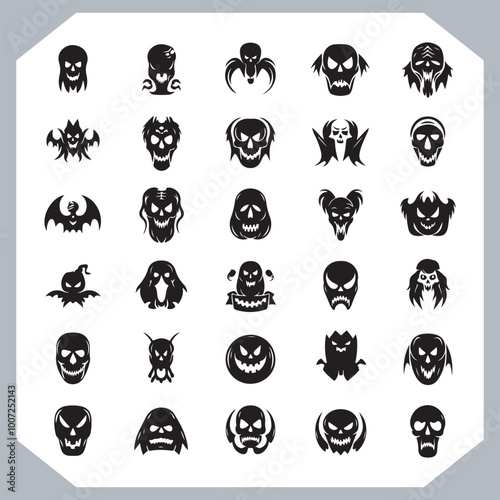 Set of logotype different type of black simple Halloween vector illustration silhouettes in white background, collection of Halloween silhouettes