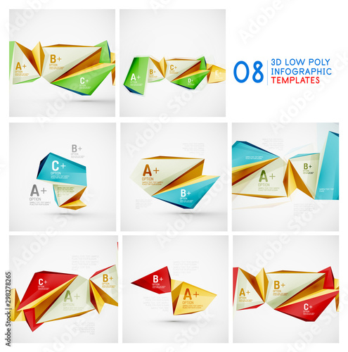 Set of low poly design 3d style, origami template with infographics. Option steps illustration