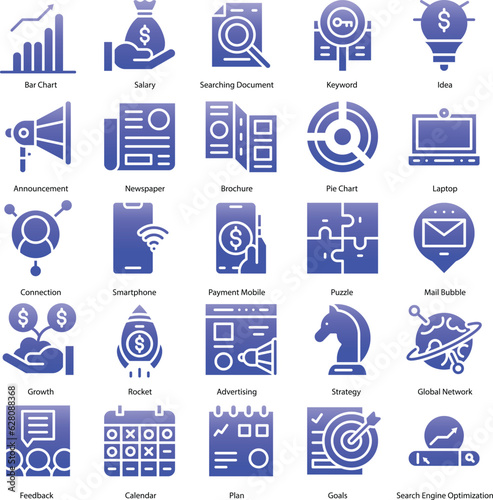 set of marketing icons, seo, analytics, ads, business by Rasamastudio
