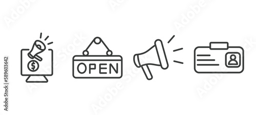 set of marketing thin line icons. marketing outline icons included online marketing, open, promote, id vector.