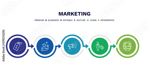 set of marketing thin line icons. marketing outline icons with infographic template. linear icons such as price, benefits, campaign, salesman, crm vector.