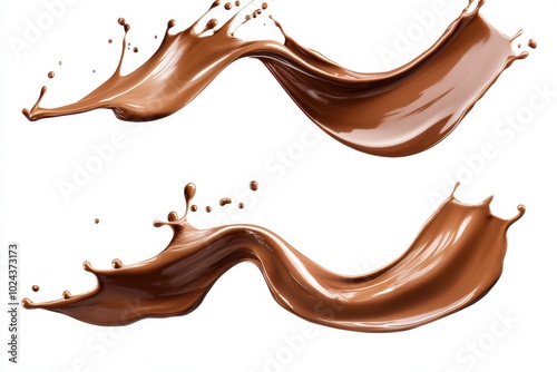 Set of Melted Chocolate wavy splash in mid air isolated on white background