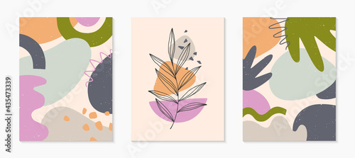 Set of modern abstract vector illustrations with organic various shapes and foliage line art.Minimalist art print.Trendy artistic designs for banners templates;social media,invitations;branding,covers