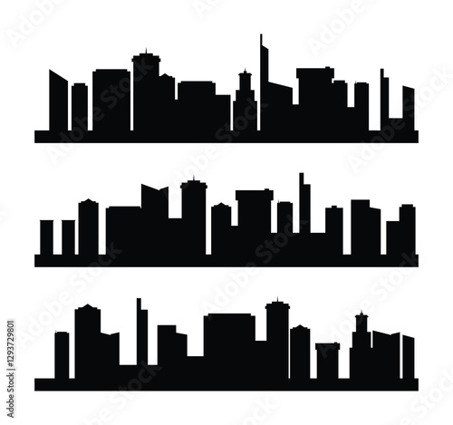 Set of modern cityscape silhouette vector. Metropolis architecture landscape.