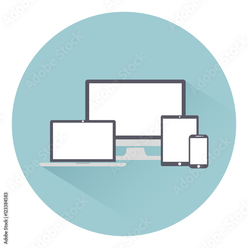 Set of monitors, laptop PC, tablet computer and mobile phone. Electronic equipment gadgets, isolated on a light background, vector illustration