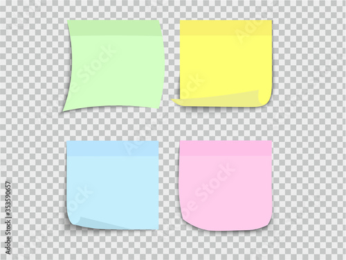 Set of multi-colored paper stickers for organizing time, notes, memos. The sticker is hanging on a sticky tape glued to the surface. Empty sample template. Sticker paper for inscriptions for memory.