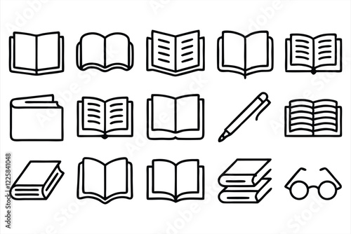 set of outline icons related to book linear ic