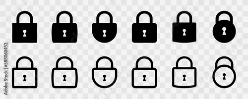 Set of padlocks vector icons set. Line lock with keyhole. Black silhouette with closed padlock. Protection symbol.