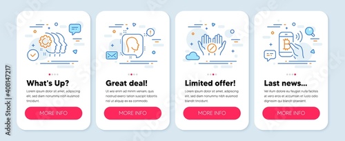 Set of People icons, such as Employees teamwork, Medical tablet, Head symbols. Mobile screen app banners. Bitcoin pay line icons. Collaboration, Medicine pill, Profile messages. Mobile payment. Vector