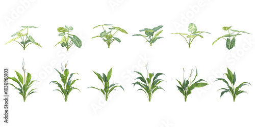 set of Philodendron Verrucosum,Spathiphyllum plants on transparent background