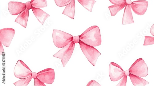 Set of Pink gift bow in watercolor style isolated on color background,Watercolor painting Coquette ribbon bow,Hand drawing decorative bow elements vector illustration,copy space for text.