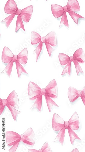 Set of Pink gift bow in watercolor style isolated on color background,Watercolor painting of pink ribbon set,Hand drawing decorative bow elements illustration,copy space.