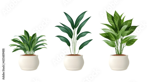 set of plants in ceramic pots isolated on transparent background, realistic.
