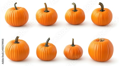 Set of pumpkins in various perspectives, isolated on clean white