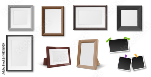 Set of realistic photo frames. Rectangle plastic or wooden picture frames collection isolated