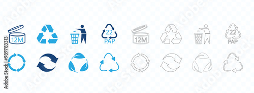 Set of recycle symbols for packaging products. Universal recycling and packing signs. Trash icons. Reuse cycle. Vector eco icons