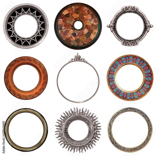 Set of round frames (circle) for paintings, mirrors or photos isolated on white background