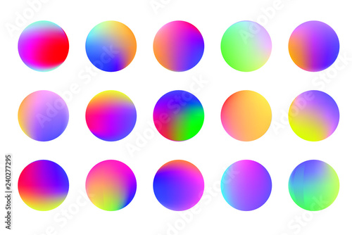 Set of round Vector Gradient. Multicolor Sphere. Modern abstract background texture. Template for design. Isolated objects.