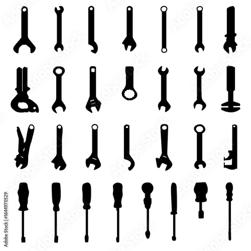 set of screwdrivers, graphic icons of various tools, including wrenches, pliers, and screwdrivers