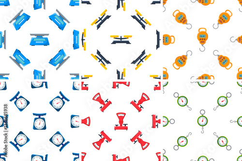 Set of seamless patterns with colorful scales measuring weight
