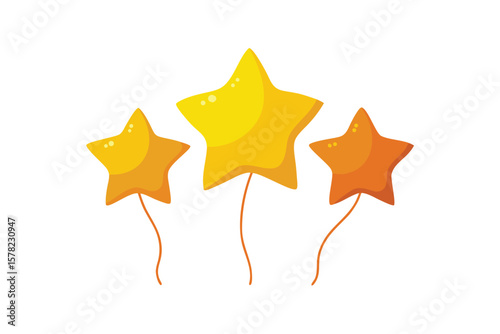 Set Of Shiny Yellow And Orange Star Balloons With Ribbons
