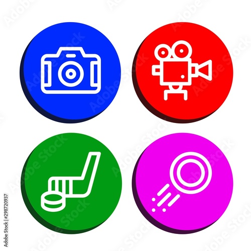 Set of shoot icons such as Camera, Movie camera, Hockey stick, Puck , shoot