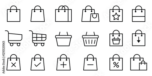 Set of shopping cart icons. icons for online store, from various cart icons in various shapes. Shopping basket icon. Shopping cart, basket, bag icon set. Linear shop icon set.