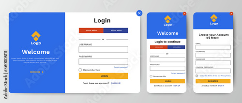 Set of Sign Up and Sign In forms. Blue gradient. Mobile Registration and login forms page. Professional web design, full set of elements. User-friendly design materials.