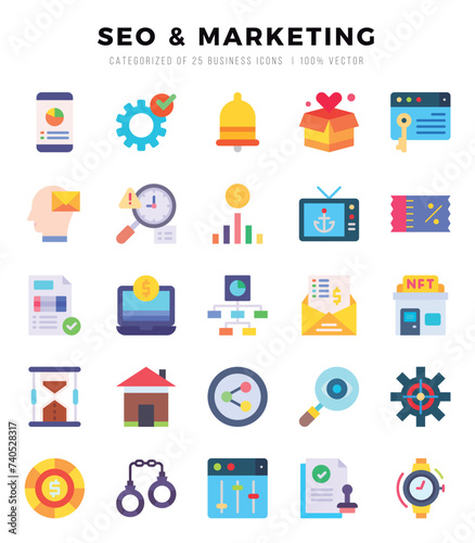 Set of simple Flat SEO & MARKETING Icons. Flat art icons pack. Vector illustration.