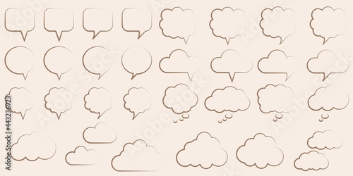 Set of simple speech bubble Line ICONS vector illustration. Talking, thinking, conversation, communication symbols. Seamless speech bubble collection for design.