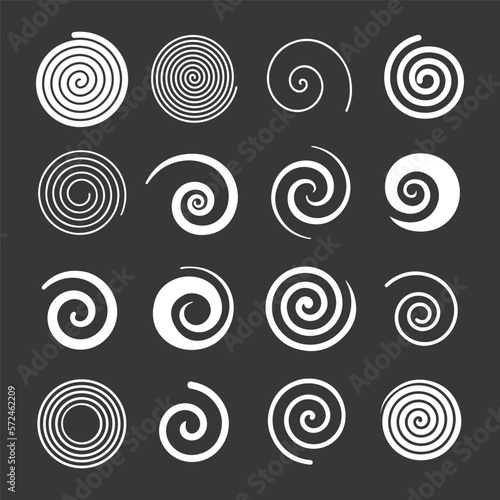 Set of simple spirals. Swirl motion twisting circles design element set isolated vector icons