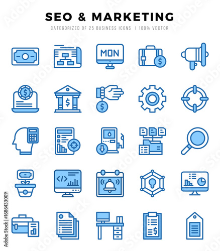 Set of simple Two Color SEO & Marketing Icons. Two Color art icons pack.