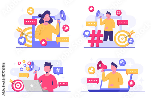Set of social media marketing concepts flat vector illustration for landing page, web banner, mobile application, banner, business content strategy, web design, Digital marketing, online connection