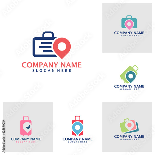 Set of Suitcase with Point logo design vector. Suitcase logo design template concept