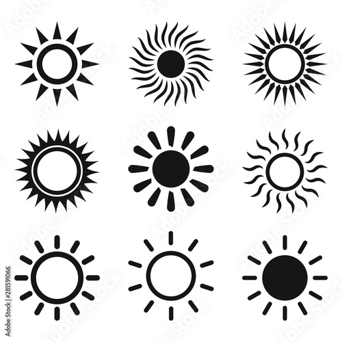 Set of sun icons, isolated vector