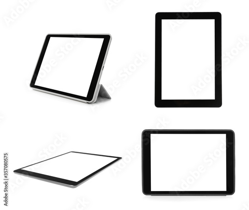 Set of tablet computers on white background
