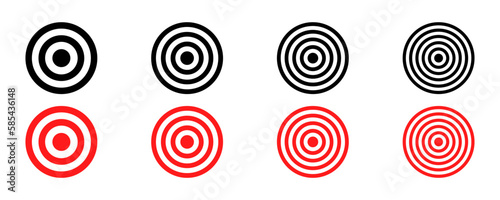 Set of targets vector icons. Red and black goal sign. Shoting on bullseye. Business idea concept.