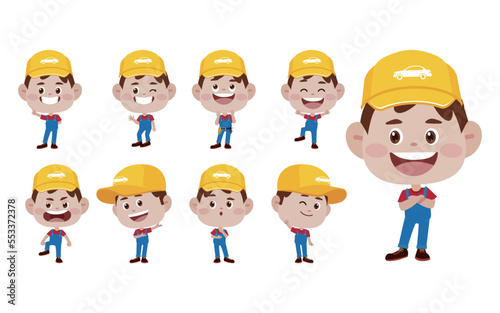 Set of technician with different poses