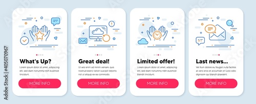 Set of Technology icons, such as Ranking, Recovery cloud, Safe time symbols. Mobile app mockup banners. New mail line icons. Hold star, Backup info, Management. Received e-mail. Ranking icons. Vector