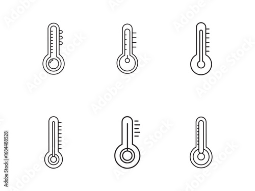 Set of Thermometer Icons with Different Designs Representing Temperature Measurement and Health Monitoring in a Clean and Minimalistic Style