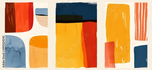 Set of Three colorful frame in Red, Blue, and Orange on a Clean White Background with geometric shape