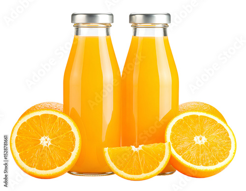 Set of Two Orange Juice Bottles with Citrus Fruits Isolated PNG