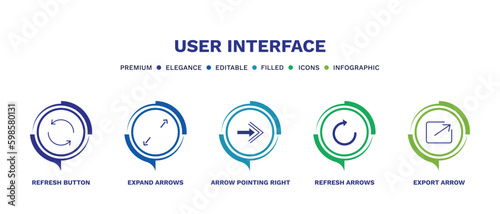 set of user interface filled icons. user interface filled icons with infographic template. flat icons such as refresh button, expand arrows, arrow pointing right, refresh arrows, export arrow