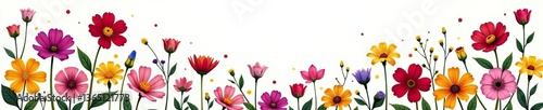 Set of various colorful flowers on white background Floral banner design, isolated, contrast