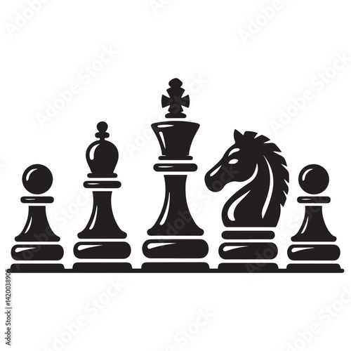 Set of Vector Black silhouettes chess pieces icons in flat style with white background