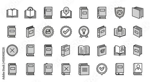 Set of Vector Icons Collection of Gray Books and Education Icons in Line Art Style. Vector Illustrations. EPS Editable