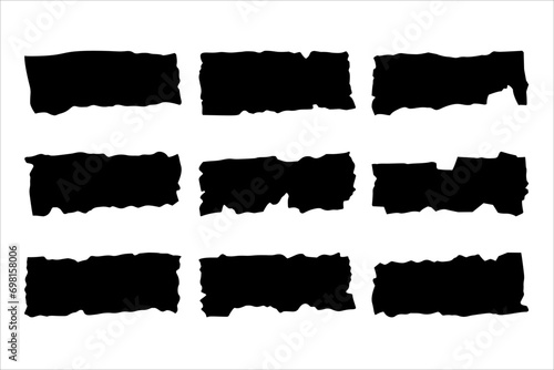 Set of vector icons of torn paper pieces. Various black rectangular jagged borders and frames